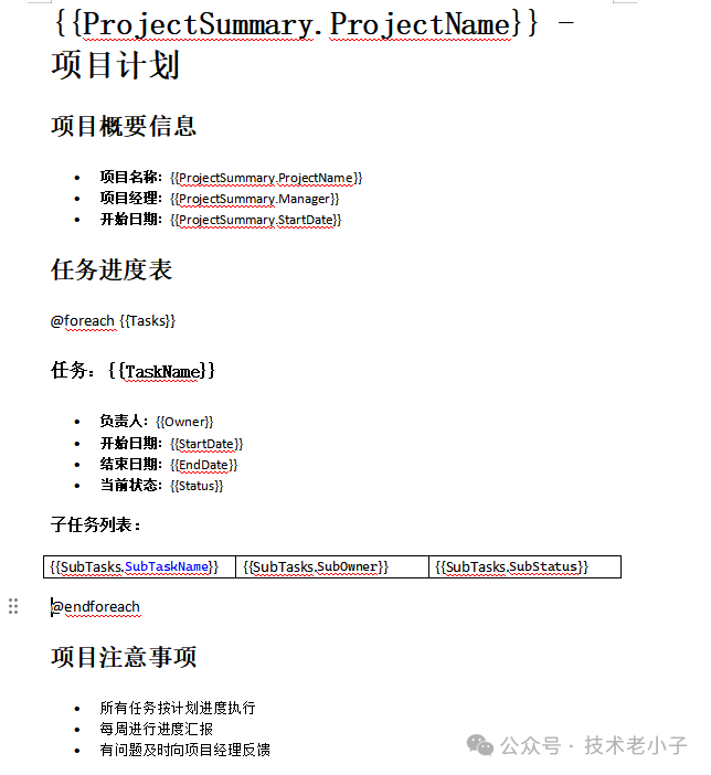 MiniWord.SaveAsByTemplate("項目計劃.docx", "項目計劃模板.docx", data);