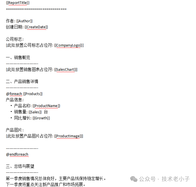 在Word模板中,使用相同的占位符語法來標(biāo)記圖片位置: