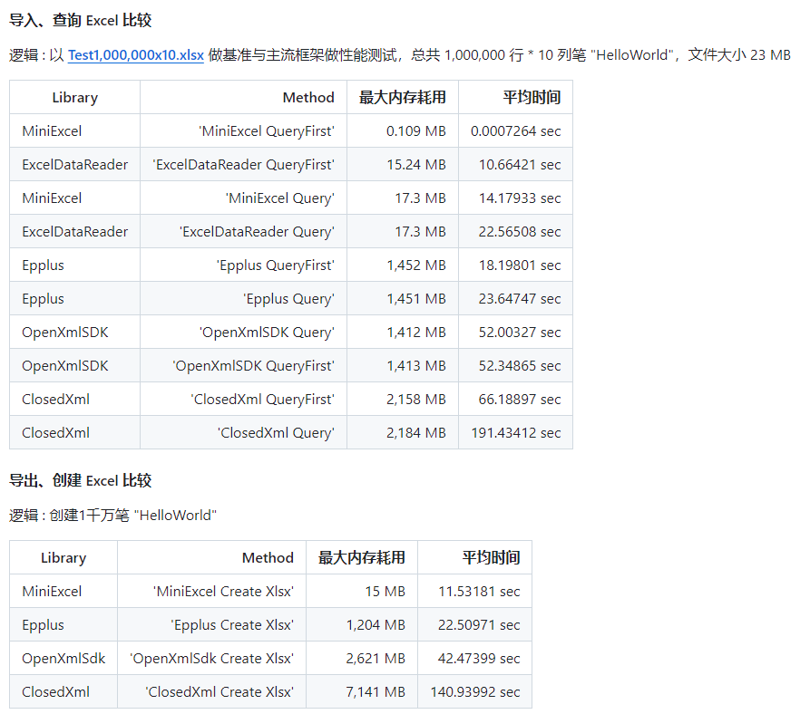 項(xiàng)目介紹MiniExcel 是一個(gè)簡(jiǎn)單高效的 .NET 處理 Excel 查、寫、填充數(shù)據(jù)的實(shí)用工具類庫,旨在避免內(nèi)存溢出(OOM)問題。目前主流框架大多需要將數(shù)據(jù)全載入到內(nèi)存方便操作,但這會(huì)導(dǎo)致內(nèi)存消耗問題,MiniExcel 嘗試以 Stream 角度寫底層算法邏輯,能讓原本1000多MB占用降低到幾MB,避免內(nèi)存不夠情況。 適用場(chǎng)景MiniExcel 適用于需要高效處理大量 Excel 數(shù)據(jù)的各種場(chǎng)景,包括但不限于: