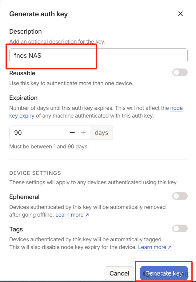 ③:Generate auth key…,生成客戶端認(rèn)證密鑰
