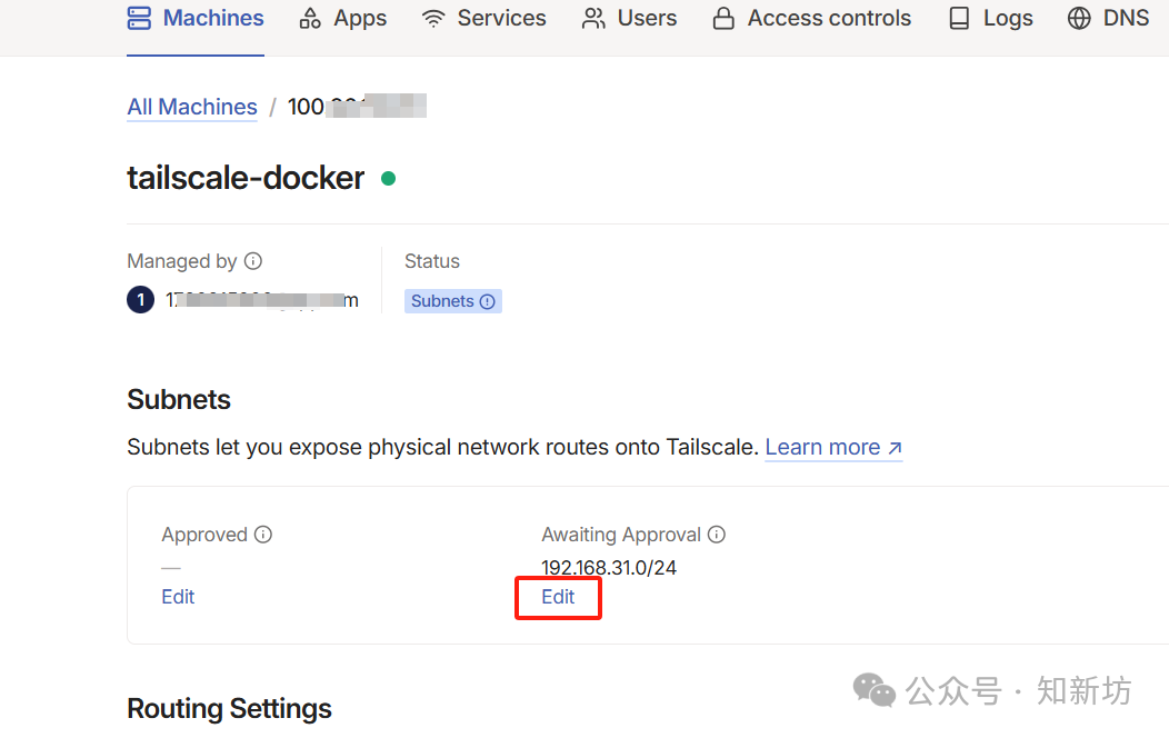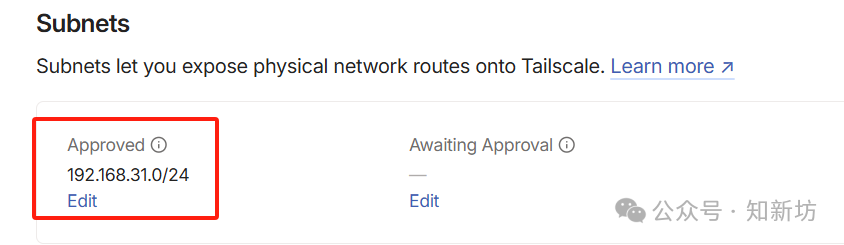 2.找到前面代碼中填入的網(wǎng)段Awaiting Approval(等待批準(zhǔn)),點擊Edit