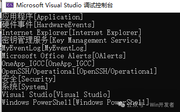 運(yùn)行輸出如下 ![]() 獲取日志下的單個(gè)記錄這里我們以Visual Studio日志為例,輸出Visual Studio日志下的所有記錄。