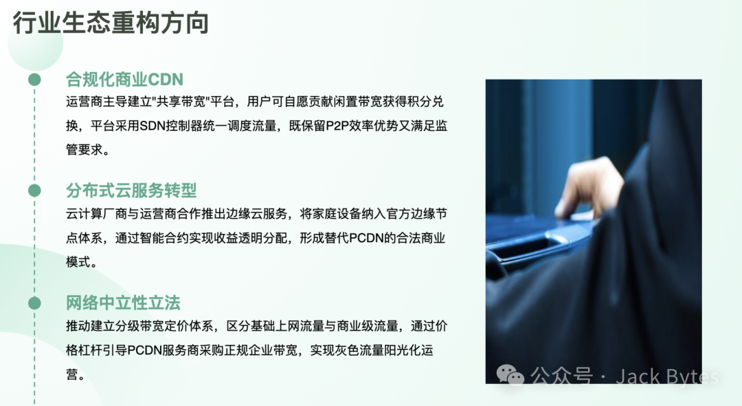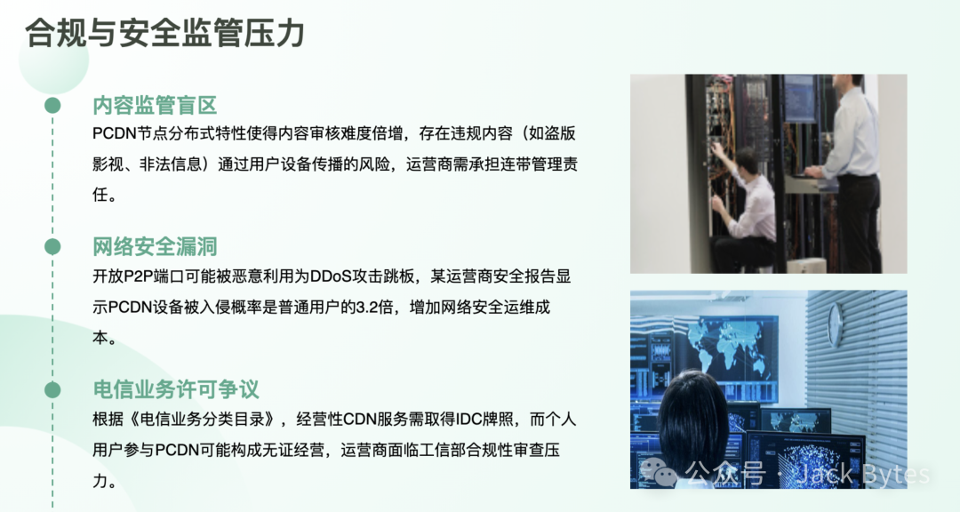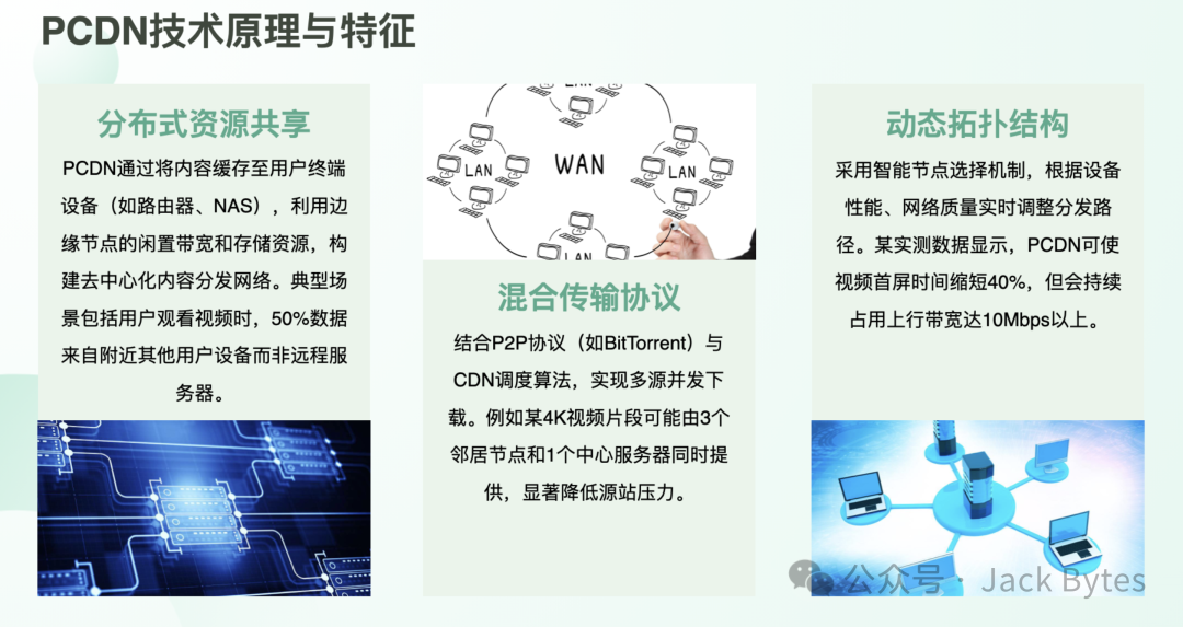 相信大家一定在網(wǎng)上看到過這些情況:有些用戶遭遇網(wǎng)絡(luò)異常,包括頻繁斷網(wǎng)、網(wǎng)速下降,甚至被運營商警告或封禁賬號。 這一現(xiàn)象的背后,是運營商對「PCDN」服務(wù)的集中整治。 那么PCDN究竟是什么?為何引發(fā)運營商大規(guī)模封殺?本文將從技術(shù)原理、商業(yè)矛盾及用戶影響等角度進(jìn)行解析。 一、什么是PCDNPCDN,實際上就是P2P+CDN,英文名稱是:Peer to Peer Content Delivery Network,中文名稱是:點對點內(nèi)容分發(fā)網(wǎng)絡(luò)。 P2P服務(wù),就是點對點服務(wù),是一個去中心化的理念,在P2P構(gòu)成的網(wǎng)絡(luò)中,每個設(shè)備既是客戶端,又是服務(wù)端,如下圖所示: CDN,就是內(nèi)容分發(fā)網(wǎng)絡(luò),是一種用于加速網(wǎng)站內(nèi)容傳輸?shù)募夹g(shù)網(wǎng)絡(luò),通過在全球部署分布式節(jié)點服務(wù)器,緩存并就近分發(fā)靜態(tài)及動態(tài)內(nèi)容,顯著降低訪問延遲、提升加載速度的網(wǎng)絡(luò)加速技術(shù),能有效減輕源站壓力并保障高并發(fā)下的穩(wěn)定傳輸,同時集成安全防護(hù)功能,廣泛應(yīng)用于電商、視頻、游戲等領(lǐng)域的實時內(nèi)容交付,并持續(xù)融合邊緣計算與智能調(diào)度優(yōu)化服務(wù)能力。 PCDN,就是P2P服務(wù)和CDN服務(wù)的結(jié)合。 在傳統(tǒng)CDN服務(wù)中,會有單獨的CDN服務(wù)器來作為節(jié)點。而PCDN中,將每個用戶的設(shè)備作為CDN服務(wù)器。 從上面的解釋可以看到,在PCDN中,每個設(shè)備都被作為了CDN節(jié)點,其中的設(shè)備除了會下載數(shù)據(jù),同時也會上傳數(shù)據(jù)。 運營商封殺PCDN主要是因為以下因素: 這其中也存在著商業(yè)利益沖突: 另外,還存在著合規(guī)與安全監(jiān)管壓力: 在未來,運營商可能通過諸如深度流量識別技術(shù)、區(qū)塊鏈溯源體系、動態(tài)信用評級機制來實現(xiàn)PCDN流量的識別、溯源、評級。 當(dāng)然,PCDN服務(wù)商也可能會進(jìn)行技術(shù)對抗,如通過邊緣計算融合、動態(tài)拓?fù)渲貥?gòu)、硬件級隱匿方案等技術(shù)來隱藏PCDN流量。 當(dāng)然,一味的封殺也不是健康的方向,畢竟技術(shù)是在持續(xù)升級的,可以通過合規(guī)化商業(yè)CDN、分布式云服務(wù)轉(zhuǎn)型、網(wǎng)絡(luò)中心性立法等方案來引導(dǎo)建立「共享帶寬」平臺,從而讓用戶可以自愿貢獻(xiàn)閑置資源,并通過運行商的統(tǒng)一調(diào)度平臺進(jìn)行流量調(diào)度,這樣既可以包括P2P效率優(yōu)勢,又能滿足監(jiān)管需求。 閱讀原文:原文鏈接 該文章在 2025/6/23 12:49:50 編輯過 |