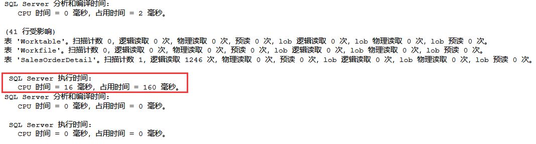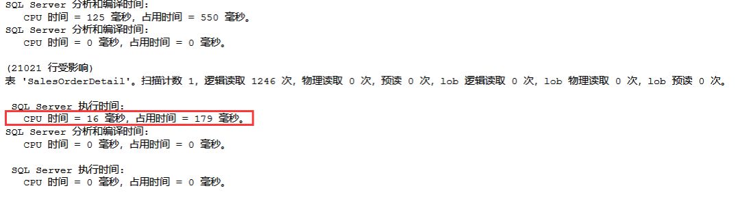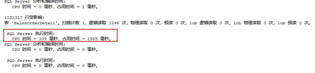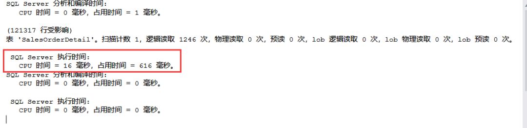 上面的相關(guān)信息我給大家解讀一下: 掃描計數(shù):索引或表掃描次數(shù) 邏輯讀取:數(shù)據(jù)緩存中讀取的頁數(shù) 物理讀取:從磁盤中讀取的頁數(shù) 預讀:查詢過程中,從磁盤放入緩存的頁數(shù) lob邏輯讀取:從數(shù)據(jù)緩存中讀取,image,text,ntext或大型數(shù)據(jù)的頁數(shù) lob物理讀取:從磁盤中讀取,image,text,ntext或大型數(shù)據(jù)的頁數(shù) lob預讀:查詢過程中,從磁盤放入緩存的image,text,ntext或大型數(shù)據(jù)的頁數(shù) 語句的CPU時間分編譯階段和執(zhí)行階段。 CPU時間是指:執(zhí)行語句的時間 占用時間是指:從磁盤讀取數(shù)據(jù)再處理總的使用時間 編譯階段: SQL Server 分析和編譯時間: 執(zhí)行階段: SQL Server 執(zhí)行時間: 這些信息我們以后都會經(jīng)??吹降模@是判斷一個查詢語句最直觀的方式。 Q:上面的消息界面是怎么出來的呢? A:點擊菜單欄的查詢——查詢選項...——高級,將SET STATISTICS TIME和SET STATISTICS IO都勾選上就可以了 我們再單獨查詢一列看會怎么樣?例如: