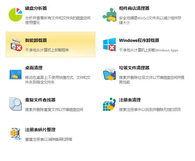 ● 找出哪些文件占用了你的磁盤空間并用圖表方式顯示 ● 智能卸載程序能完全卸載程序而無殘留的文件和注冊表項(xiàng)目 ● 支持查找并清除垃圾文件以減少硬盤空間占用; ● 重復(fù)文件查找器功能可以掃描你的電腦重復(fù)文件方便進(jìn)一步清理 ● 注冊表管理功能:清理能檢查不正確的注冊表項(xiàng)、整理能重建和重新索引本地注冊表,以減少注冊表訪問時(shí)間,從而提高應(yīng)用程序的響應(yīng)速度 ● 桌面清理器功能可以輕松地清理桌面上的無用的圖標(biāo)和文件 2.4 軟件設(shè)置自定義