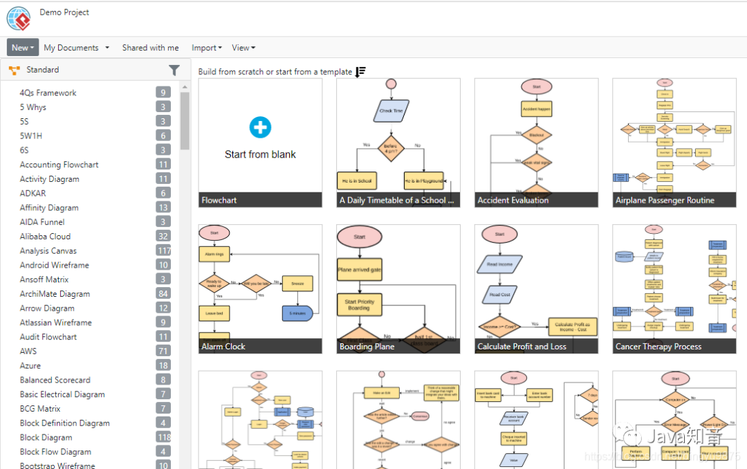 ![]() 2. visual paradigm online這個(gè)網(wǎng)站最大的一個(gè)優(yōu)點(diǎn)就是直截了當(dāng)?shù)慕o你提供了各方面各類型的流程圖模板,能夠直接選擇并使用。