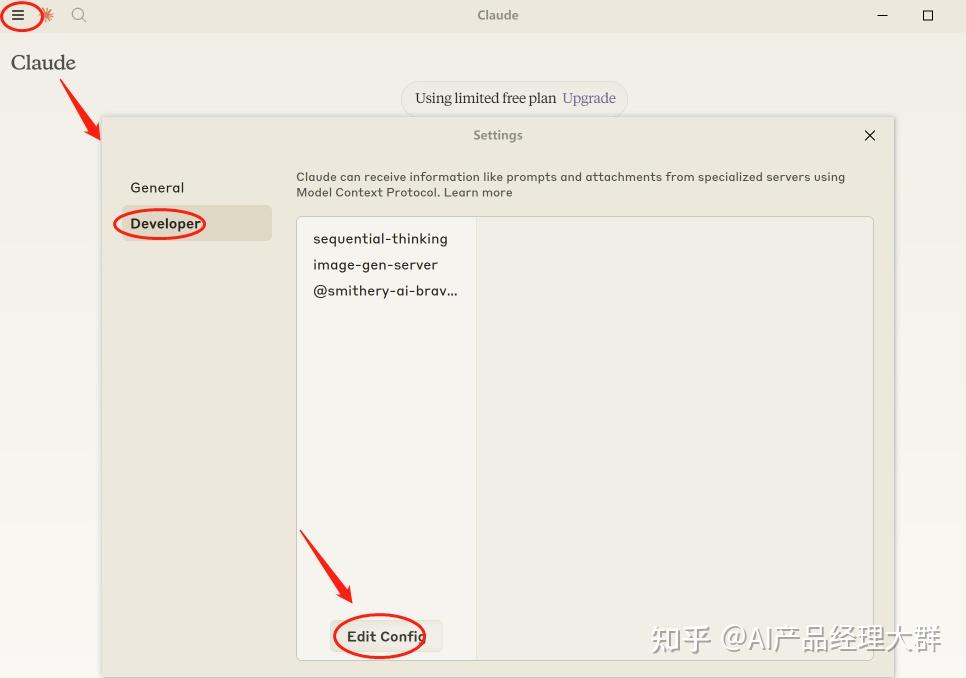 Claude Desktop 使用示例以 Claude Desktop 為例,配置 MCP 客戶端的步驟如下: