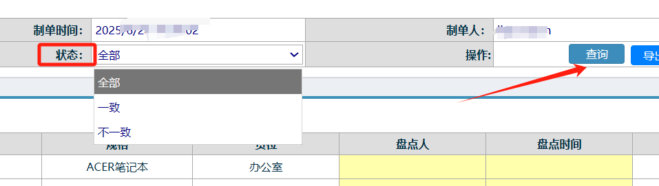 可以選擇狀態(tài)是否一致,點(diǎn)擊查詢 如下圖: