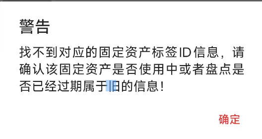 點晴永久免費OA-彈出提示:找不到對應(yīng)的固定資產(chǎn)標(biāo)簽ID信息,請確認(rèn)該固定資產(chǎn)是否使用中或者盤點是否已經(jīng)過期屬于舊的信息