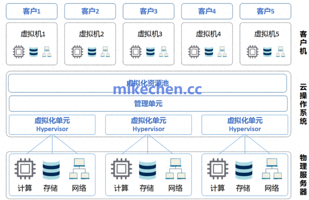 云計(jì)算,英文名:“Cloud Computing”,是一種通過(guò)互聯(lián)網(wǎng)提供計(jì)算資源、和服務(wù)的技術(shù)。 云計(jì)算技術(shù) 云計(jì)算技術(shù),主要包括:計(jì)算能力、虛擬化、容器、數(shù)據(jù)庫(kù).........等,用戶可以按需使用并按使用量付費(fèi)。 1.虛擬化技術(shù) 虛擬化技術(shù),是云計(jì)算技術(shù)實(shí)現(xiàn)的核心基礎(chǔ)之一,虛擬化,是一種通過(guò)軟件技術(shù)將物理硬件抽象成多個(gè)邏輯資源的技術(shù)。 比如:?jiǎn)我坏奈锢碛布ㄈ绶?wù)器),可以被分割成多個(gè)獨(dú)立的虛擬機(jī)(VM)、或容器。 如下圖所示: 通過(guò)虛擬化,這些資源可以獨(dú)立運(yùn)行,彼此隔離,并動(dòng)態(tài)分配和調(diào)整。 無(wú)論是企業(yè)自建數(shù)據(jù)中心,還是使用公有云服務(wù),虛擬化技術(shù)都扮演著不可或缺的角色。 2.容器化技術(shù) 容器技術(shù),是 DevOps、微服務(wù)架構(gòu)、和現(xiàn)代云原生應(yīng)用的核心組件。 本質(zhì)上,容器也是一種輕量級(jí)的虛擬化方式,它在操作系統(tǒng)層面實(shí)現(xiàn)虛擬化。 容器化,將應(yīng)用程序及其所有依賴(比如:庫(kù)文件、配置...等),打包成一個(gè)獨(dú)立的單元。 容器,打包了應(yīng)用及其依賴,確保在開(kāi)發(fā)、測(cè)試、生產(chǎn)環(huán)境...中的一致性。 并且,容器只包含應(yīng)用程序、及其運(yùn)行所需的最小化依賴,與虛擬機(jī)相比,占用資源少。 4.分布式計(jì)算 在云計(jì)算中,分布式計(jì)算支持處理海量數(shù)據(jù)、和高并發(fā)任務(wù),確保系統(tǒng)在大規(guī)模用戶請(qǐng)求下的高效運(yùn)行。 分布式計(jì)算(Distributed Computing),是一種通過(guò)將計(jì)算任務(wù),分解并分布到多個(gè)節(jié)點(diǎn)(比如:通常是網(wǎng)絡(luò)中的計(jì)算機(jī)),上并行處理的計(jì)算模式。 提供并行計(jì)算支持,比如:Apache Hadoop、Apache Spark...等等。 云計(jì)算服務(wù) 云技術(shù)服務(wù),常見(jiàn)的包含:IaaS(基礎(chǔ)設(shè)施即服務(wù))、PaaS(平臺(tái)即服務(wù))、和 SaaS(軟件即服務(wù))...等等。 三者的關(guān)系,如下圖所示: 1.IaaS IaaS 是云計(jì)算的最底層,它是構(gòu)建 PaaS 、和 SaaS 的基石。 IaaS ,會(huì)提供計(jì)算、存儲(chǔ)、網(wǎng)絡(luò)...等基礎(chǔ)設(shè)施服務(wù)。 如下圖所示: 會(huì)提供虛擬化的技術(shù),比如:計(jì)算、存儲(chǔ)、網(wǎng)絡(luò)...等等的產(chǎn)品。 這些產(chǎn)品,通過(guò)互聯(lián)網(wǎng)、或?qū)S芯W(wǎng)絡(luò)以按需方式提供,用戶可以像管理本地硬件一樣管理這些資源,但無(wú)需實(shí)際擁有、或維護(hù)物理設(shè)備。 最典型的,就包含:Amazon EC2、Google Compute Engine、阿里云 ECS...等云計(jì)算服務(wù)器。 2.PaaS PaaS 構(gòu)建在 IaaS 之上,提供運(yùn)行、開(kāi)發(fā)、和部署應(yīng)用程序的平臺(tái)。 PaaS ,抽象掉了基礎(chǔ)設(shè)施的復(fù)雜性,讓用戶只需關(guān)注應(yīng)用程序、和開(kāi)發(fā)。 云計(jì)算,負(fù)責(zé)管理:比如:操作系統(tǒng)、中間件/和環(huán)境...等等,用戶專注于應(yīng)用開(kāi)發(fā)。 PaaS,非常適合:開(kāi)發(fā)者快速開(kāi)發(fā)、測(cè)試、和部署應(yīng)用...等場(chǎng)景。 3.SaaS SaaS 是最高層,直接向用戶提供完整的軟件服務(wù)。 比如:Gmail、CRM、ERP、Salesforce ...等等,都是典型的SaaS產(chǎn)品。 Saas,讓用戶通過(guò)瀏覽器、或客戶端直接訪問(wèn),無(wú)需關(guān)心底層硬件、或軟件的維護(hù)。 總之: