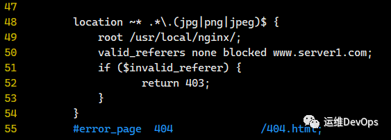 Nginx 會(huì)通過查看 referer 字段和 valid_referers 后面的 referer 列表進(jìn)行匹配,如果匹配到了就將內(nèi)置的變量$invalid_referer值設(shè)置為0,否則設(shè)置該值為1,匹配的過程不區(qū)分大小寫 1、下面在server1服務(wù)器的Nginx配置防盜鏈設(shè)置,如圖: