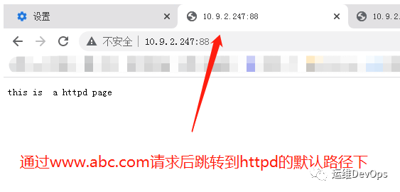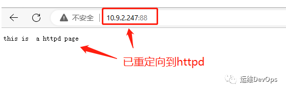 此時(shí)通過瀏覽器訪問http://10.9.2.247,可以看到已經(jīng)跳轉(zhuǎn)到httpd,如圖: