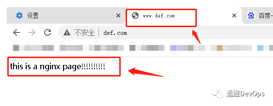 通過瀏覽器訪問www.def.com,可以看到跳轉(zhuǎn)到了Nginx的默認(rèn)界面,如圖: