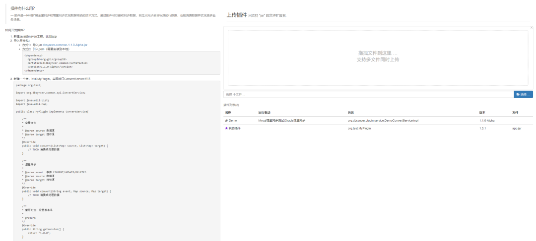 - 插件管理:支持上傳插件自定義同步轉換業(yè)務,滿足用戶特定的同步需求。