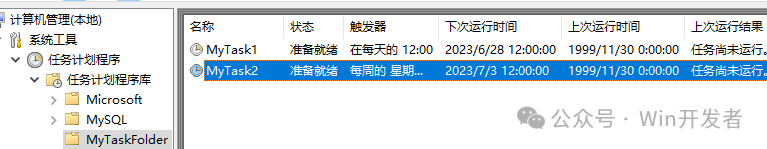 創(chuàng)建一個(gè)名為MyTask1的計(jì)劃任務(wù),位于MyTaskFolder文件夾下,該任務(wù)在每周一的12:00執(zhí)行 "notepad.exe test.txt"