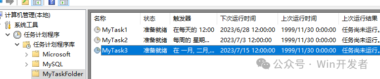 創(chuàng)建一個(gè)名為MyTask1的計(jì)劃任務(wù),位于MyTaskFolder文件夾下,該任務(wù)在每天的12:00執(zhí)行 "notepad.exe test.txt"