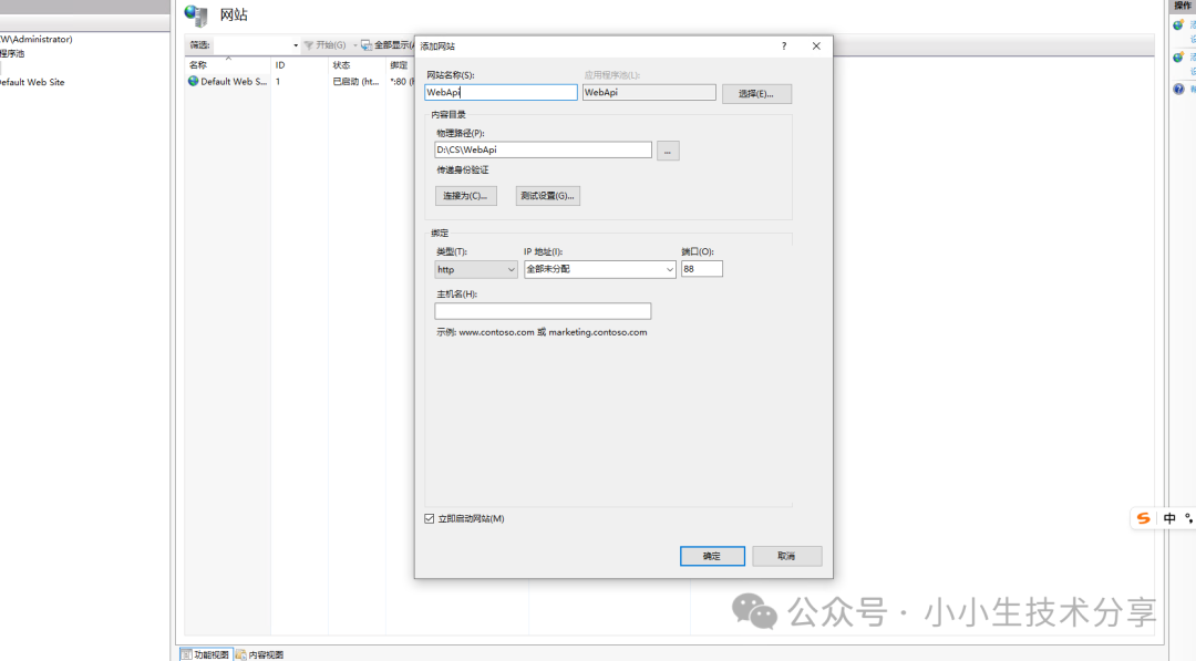 1.右鍵工程,點(diǎn)擊發(fā)布2.選擇文件夾,然后文件夾位置默認(rèn)就行,點(diǎn)擊完成3.然后點(diǎn)擊發(fā)布二.部署到IIS1.發(fā)布成功后,點(diǎn)擊目標(biāo)位置,打開發(fā)布文件位置2.復(fù)制里面文件,到發(fā)布的文件夾里面3.打開IIS ,添加網(wǎng)站,物理路徑選擇上一步拷出來文件位置,端口不重復(fù)就行,然后點(diǎn)擊確認(rèn)4.點(diǎn)擊瀏覽,打開默認(rèn)瀏覽器,就可以顯示對(duì)完接口了,然后用postman就可以調(diào)試了