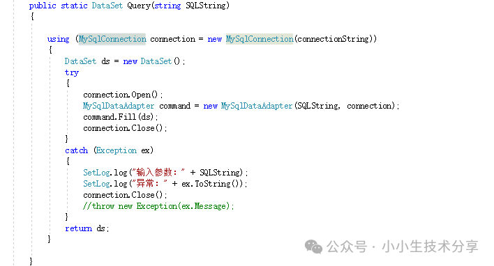 MySqlDataAdapter command = new MySqlDataAdapter(SQLString, connection);