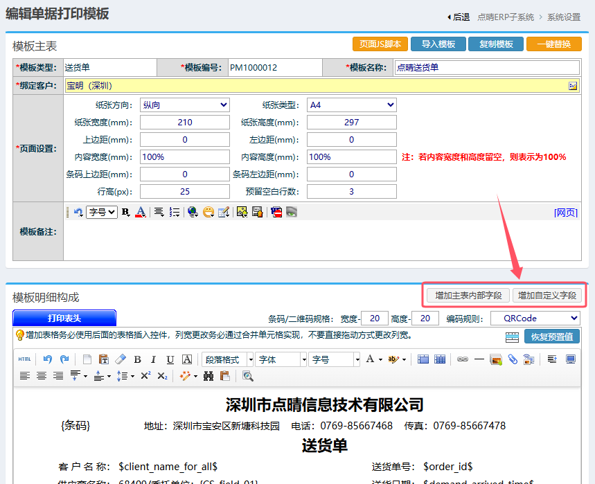 【點晴模切ERP】銷售訂單主表是否支持添加自定義字段,并帶到送貨單中打印出來?