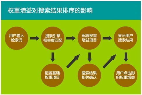 3.在基礎(chǔ)權(quán)值(相關(guān)度匹配)的基礎(chǔ)上,做權(quán)重增益處理,最終得出搜索結(jié)果排名。