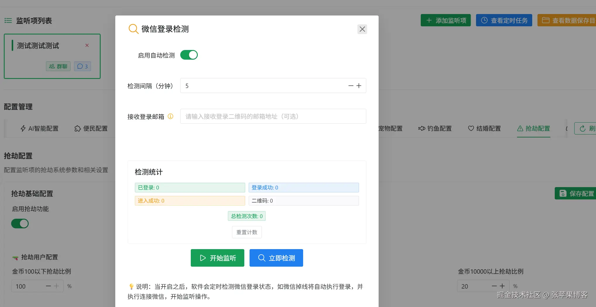 !!! success 提示:當(dāng)開啟掉線檢測等功能之后,經(jīng)過測試,微信連續(xù)掛機(jī)一周之后還能正常發(fā)送消息。 !!!