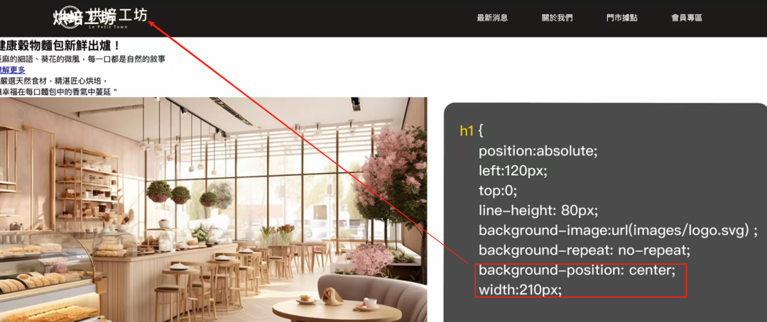接著如何將logo圖片移動位置呢?這就需要用到我們上篇講到的position語法。 ? background-position 定位logo圖片起始位置(比如使其居中)
