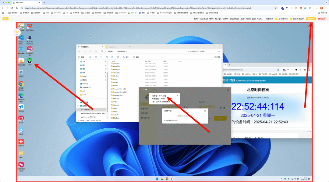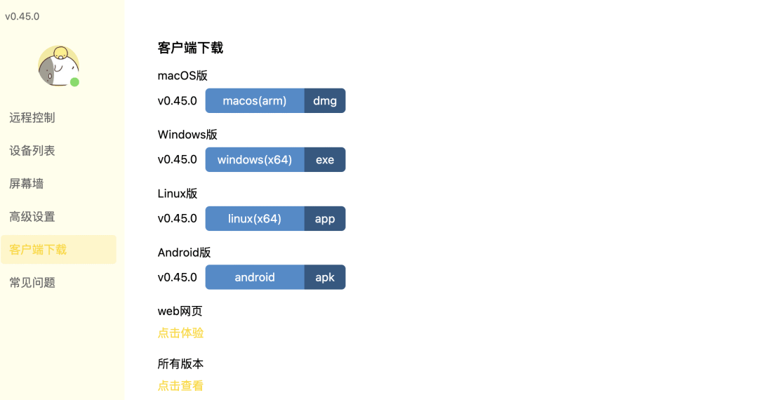 - ? 支持網(wǎng)頁控制桌面或移動端,也支持客戶端間交互(電腦?電腦、電腦?安卓、安卓?網(wǎng)頁等)