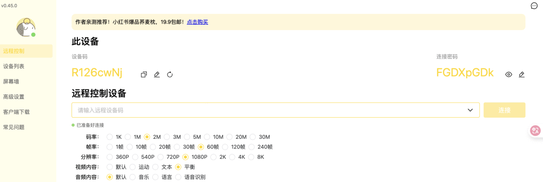- ? 自定義設(shè)備碼、連接密碼、支持 Web/API 自建中繼配置