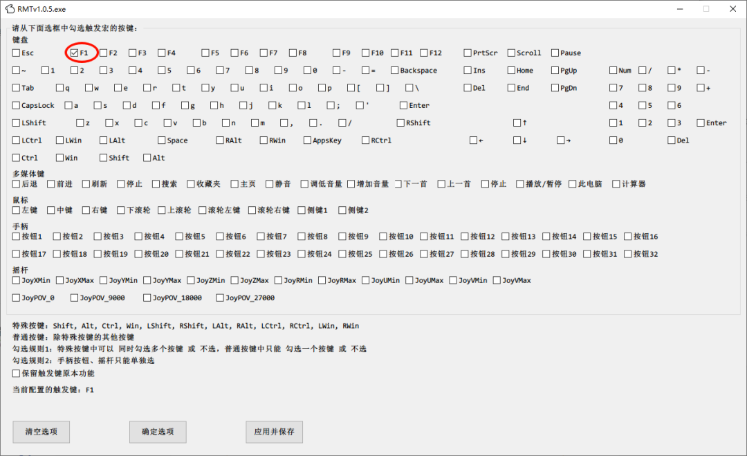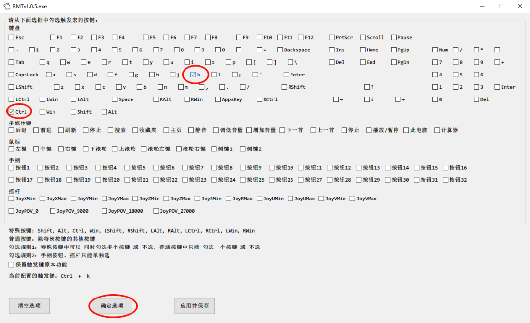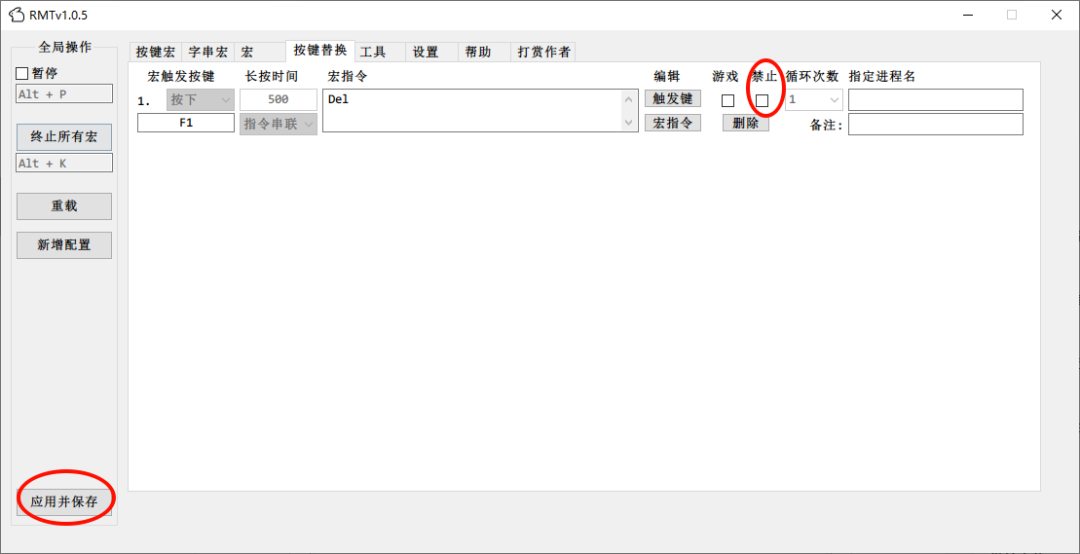 舉個(gè)例子,假如我們需要按CTRL+K了以后實(shí)現(xiàn)自動(dòng)按某些按鍵的功能,可以這么進(jìn)行設(shè)置:想要實(shí)現(xiàn)的功能就很靈活了,可以這么進(jìn)行設(shè)置:假設(shè),我們讓它輸出一段文字,就可以點(diǎn)擊“輸出”,然后這么設(shè)置:此時(shí),我們按CTRL+K,就可以輸出這些文字了。軟件可以實(shí)現(xiàn)的功能非常多,我們?cè)倥e個(gè)例子,假設(shè)我們的鍵盤某個(gè)按鍵失靈了,或者我們按某些鍵的時(shí)候感覺(jué)特別麻煩,我們就可以使用按鍵替換功能。我們把F1鍵和DEL鍵對(duì)換一下,當(dāng)我們點(diǎn)擊F1的時(shí)候,讓電腦實(shí)際觸發(fā)DEL鍵的功能。那我們就點(diǎn)擊觸發(fā)鍵,設(shè)置為F1。然后再點(diǎn)擊宏指令,設(shè)置為DEL鍵。然后有個(gè)需要注意的點(diǎn),就是當(dāng)你設(shè)置完成后,軟件默認(rèn)這條設(shè)置是禁止?fàn)顟B(tài),我們需要把禁止?fàn)顟B(tài)取消后,點(diǎn)擊應(yīng)用并保存才能生效。那么此時(shí),這條配置就已經(jīng)正式生效了。軟件的功能有很多,還有鼠標(biāo)的控制,圖片的識(shí)別等等,都快趕上一個(gè)按鍵精靈的功能了。我這里舉的例子都是比較普通的,相信大家可以自行研究它更多的使用場(chǎng)景,無(wú)論如何,這種軟件都是提高我們生產(chǎn)力,或者玩游戲的好幫手。