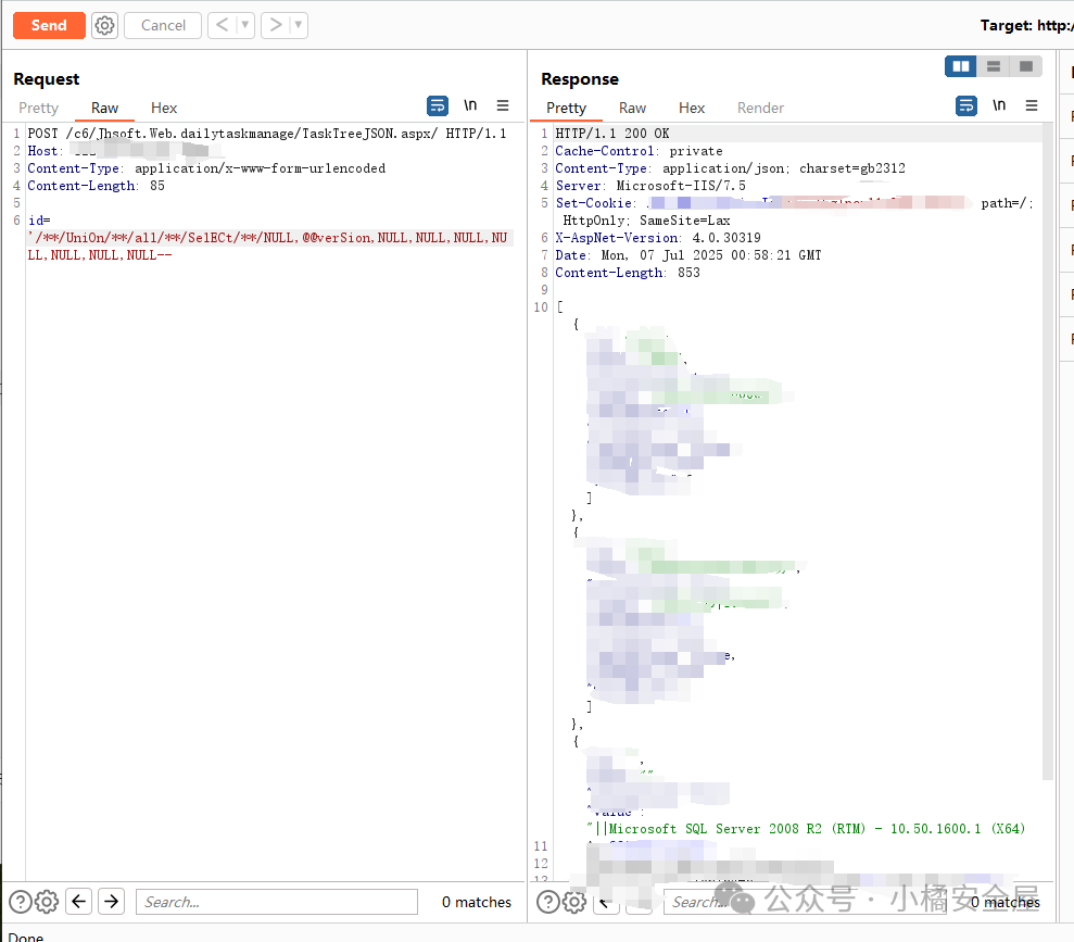 通過poc拿到數(shù)據(jù)庫版本信息,成功復現(xiàn)漏洞,點到為止