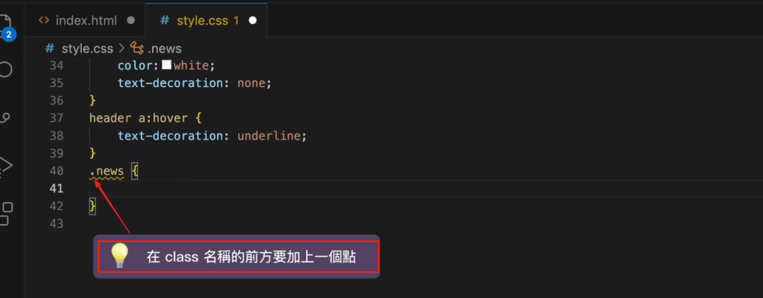 class=后面的組別名稱,可以按照個人喜好取 在html中命名好后,就可以在CSS樣式表內(nèi)針對該class寫它專用的CSS語法(即只針對這一class的美化) 當然你說,我有的時候就是希望多個區(qū)塊都用一樣的配色,但又不想單獨去寫,該怎么辦。別著急,此時你只需要給另一個<section>的class屬性命名為一樣的"news"名稱,即可以重復使用。并且保持語法結(jié)構的簡潔。 1.接下來我將給出完整的CSS示意代碼,方便你可直接復用,更快上手。