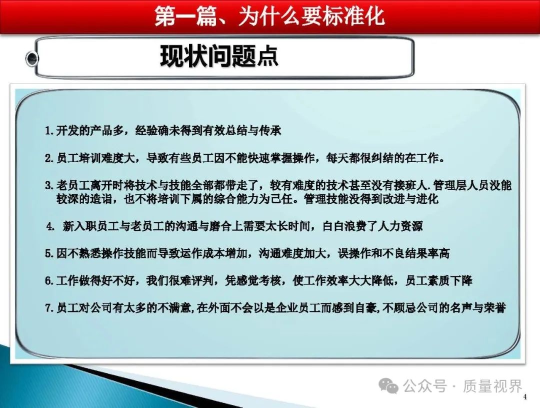 SOP 的本質(zhì)是什么? SOP(Standard Operating Procedure,標(biāo)準(zhǔn)作業(yè)程序)的本質(zhì)是將重復(fù)性工作的最佳實(shí)踐轉(zhuǎn)化為可執(zhí)行、可追溯的標(biāo)準(zhǔn)化流程。它不是簡(jiǎn)單的 “操作步驟清單”,而是對(duì)工作邏輯的系統(tǒng)性梳理 —— 包含 “做什么(目標(biāo))、怎么做(步驟)、誰(shuí)來(lái)做(責(zé)任)、用什么做(工具)、注意什么(風(fēng)險(xiǎn))” 等核心要素,本質(zhì)上是組織經(jīng)驗(yàn)的固化與傳承載體。 為什么要標(biāo)準(zhǔn)化? 標(biāo)準(zhǔn)化(包括 SOP 的落地)的核心目的是解決 “不確定性” 帶來(lái)的效率損耗與風(fēng)險(xiǎn),具體可從 3 個(gè)維度理解: 1. 對(duì) “執(zhí)行層”:降低操作門檻,減少失誤