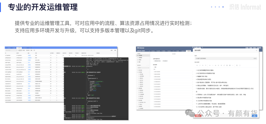 既然企業(yè)要用到低代碼,我們就一定要明確,低代碼究竟能夠給企業(yè)帶來哪些價(jià)值。據(jù)統(tǒng)計(jì),低代碼開發(fā)在企業(yè)內(nèi)部信息化的應(yīng)用上的效率提升大概在 67% 左右,相當(dāng)于 1 個(gè)人能夠發(fā)揮 2-3 人的人效。而開發(fā)完成后,測試和優(yōu)化的周期也相應(yīng)會(huì)大大縮短。所以相同的項(xiàng)目通過傳統(tǒng)編碼的方式來做可能需要 3 個(gè)月的時(shí)間,而低代碼預(yù)計(jì) 1 個(gè)月左右就能搞定了。無論是人力的占用還是時(shí)間成本,低代碼在降本增效方面都有著絕對(duì)的優(yōu)勢(shì)。不用像過去的代碼開發(fā)一樣,需要做大量的準(zhǔn)備工作才能開始編碼。通過低代碼所見即所得,快速開發(fā)的特性。很多的業(yè)務(wù)實(shí)踐或者優(yōu)化都可以在幾分鐘內(nèi)開發(fā)出來,得到效果反饋。這會(huì)直接改變?cè)械钠髽I(yè)數(shù)字化戰(zhàn)略計(jì)劃。讓數(shù)字化的整體規(guī)劃過程可以更加從容。不用擔(dān)心一旦開始開發(fā)很多東西就不能修改,不能回頭的問題。模塊化的開發(fā)模式,會(huì)讓整個(gè)業(yè)務(wù)變得更加靈活,更加能夠匹配市場的變化。和傳統(tǒng)編碼必須得由 IT 人員參與的情況不同,對(duì)于一些基礎(chǔ)性的改動(dòng)或者開發(fā)工作,通過低代碼平臺(tái)已經(jīng)不需要 IT 人員“事必躬親”了,業(yè)務(wù)人員也可以根據(jù)自身的需求,通過平臺(tái)的配置項(xiàng)快速完成業(yè)務(wù)的變更和修改,在 IT 資源緊缺的公司,這種模式,會(huì)很大程度的提高員工參與信息化建設(shè)的積極性,更好的推動(dòng)企業(yè)數(shù)字化落地。企業(yè)級(jí)最重要的意義在于必須要能夠成為支持企業(yè)各部門、各業(yè)務(wù)開展的信息化重要“支柱”,企業(yè)的數(shù)字化應(yīng)用場景,按照業(yè)務(wù)類型通常包括數(shù)據(jù)信息管理、業(yè)務(wù)審批、各類報(bào)表分析以及其他業(yè)務(wù);按照業(yè)務(wù)部門可以分為人事行政、項(xiàng)目、銷售、研發(fā)、生產(chǎn)等等;按照當(dāng)前的軟件類別又可以分為 ERP、CRM、OA、PLM、MES 等等,各行業(yè)中又還有其他的定義標(biāo)準(zhǔn)。所以如果要采購低代碼平臺(tái),能否支持到上述這些場景下,去完成系統(tǒng)開發(fā)任務(wù),將會(huì)是所有公司采購平臺(tái)的最關(guān)鍵因素。誰也不想買一個(gè)工具箱,卻只能解決一個(gè)問題。諸多的低代碼開發(fā)平臺(tái)往往都只強(qiáng)調(diào)業(yè)務(wù)開發(fā)過程,卻忽略后續(xù)的運(yùn)維管理。要知道一個(gè)正常可運(yùn)行的系統(tǒng),開發(fā)完成才只是開始,后續(xù)還會(huì)有持續(xù)不斷的優(yōu)化和開發(fā)。那么誰來開發(fā),誰能開發(fā),如何進(jìn)行版本的管理和運(yùn)維。大型信息化系統(tǒng)需要有嚴(yán)格的研發(fā)管理流程。不然一旦操作不慎,可能會(huì)導(dǎo)致企業(yè)重要經(jīng)營數(shù)據(jù)的流失和業(yè)務(wù)的癱瘓。這一塊低代碼是不能和傳統(tǒng)代碼開發(fā)“唱反調(diào)”的。企業(yè)級(jí)低代碼在這一塊能夠保持和傳統(tǒng)代碼開發(fā)一樣,在運(yùn)維上: