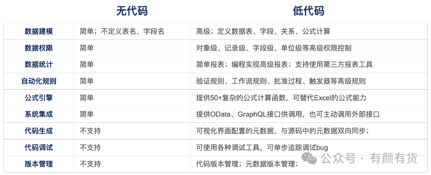 低代碼和無代碼具有一些相似之處,包括它們的主要目的。這兩個(gè)平臺(tái)都旨在作為傳統(tǒng)應(yīng)用程序開發(fā)的替代方法,方便企業(yè)中的平民開發(fā)者構(gòu)建新應(yīng)用。但是,有一些關(guān)鍵的區(qū)別因素。對(duì)于低代碼平臺(tái),開發(fā)人員至少需要對(duì)編程有基本的了解,而無代碼平臺(tái)采用拖放式方法,不需要任何編碼知識(shí)。無代碼適用于構(gòu)建小型應(yīng)用,并且其功能可能有限。另一方面,低代碼往往允許開發(fā)人員創(chuàng)建更復(fù)雜的應(yīng)用。