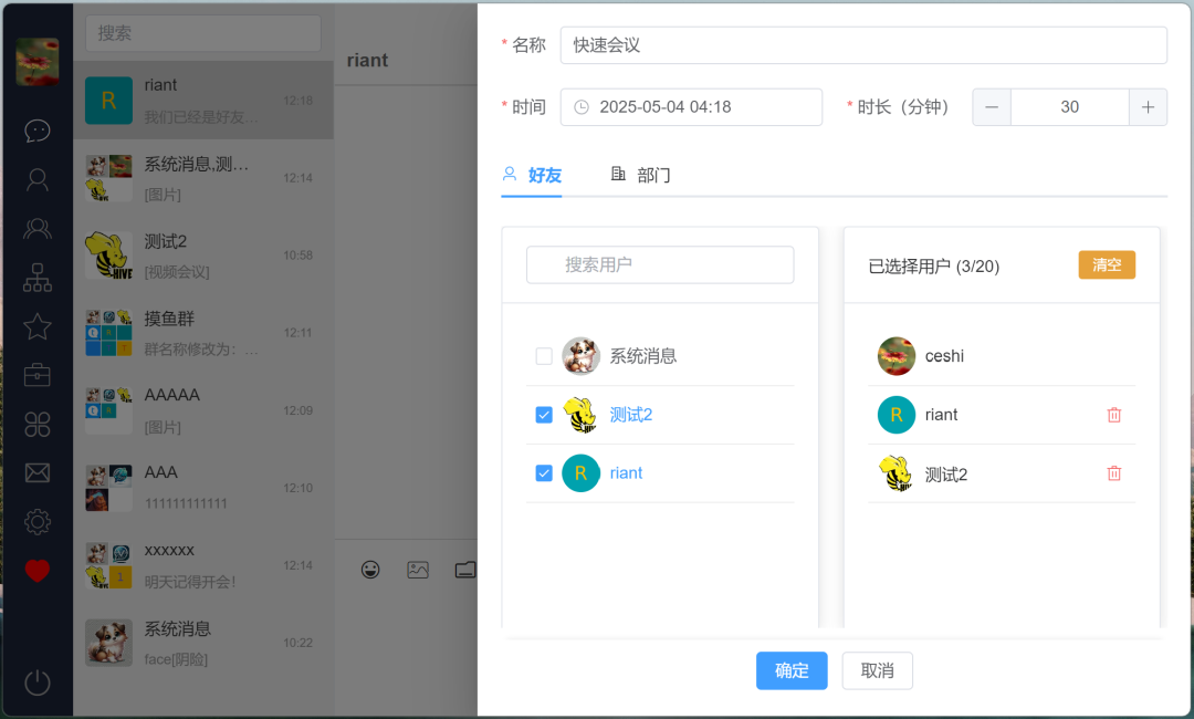 項(xiàng)目技術(shù)棧前端Electron + Vue 3 + TypeScript + Element Plus,支持 Windows、linux、mac、安卓、IOS、小程序、H5。支持語音消息,視頻通話等。 服務(wù)端springboot、tio、mybatis 等技術(shù)。 功能演示開源地址https://gitee.com/alyouge/V-IM? 該文章在 2025/7/25 12:14:46 編輯過 |