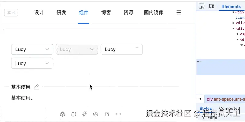 下面以 "Ant Design" 的 Select 組件 為例說明: