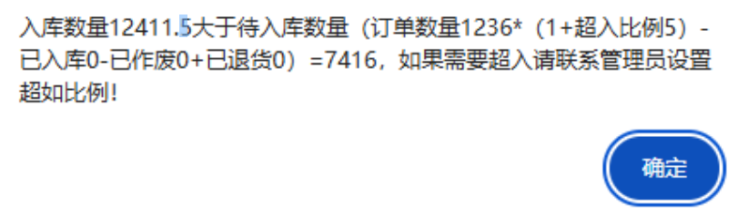 點(diǎn)晴模切ERP-彈出提示:如果需要超入請(qǐng)聯(lián)系管理員設(shè)置超如比例!