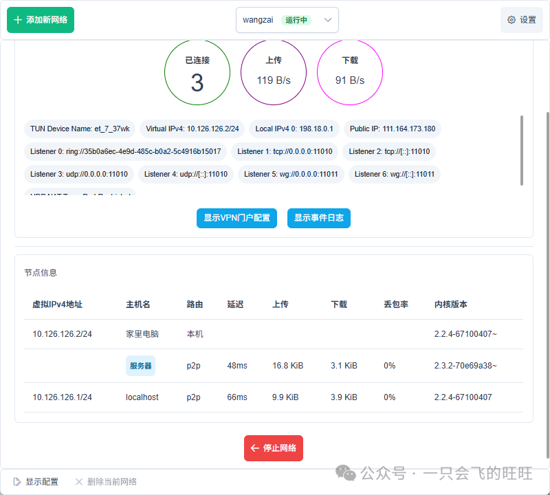 這樣組網(wǎng)就成功了,我們就可以用這個(gè)虛擬的ipv4地址互相連接了! 比如我用手機(jī)通過虛擬IP遠(yuǎn)程電腦!