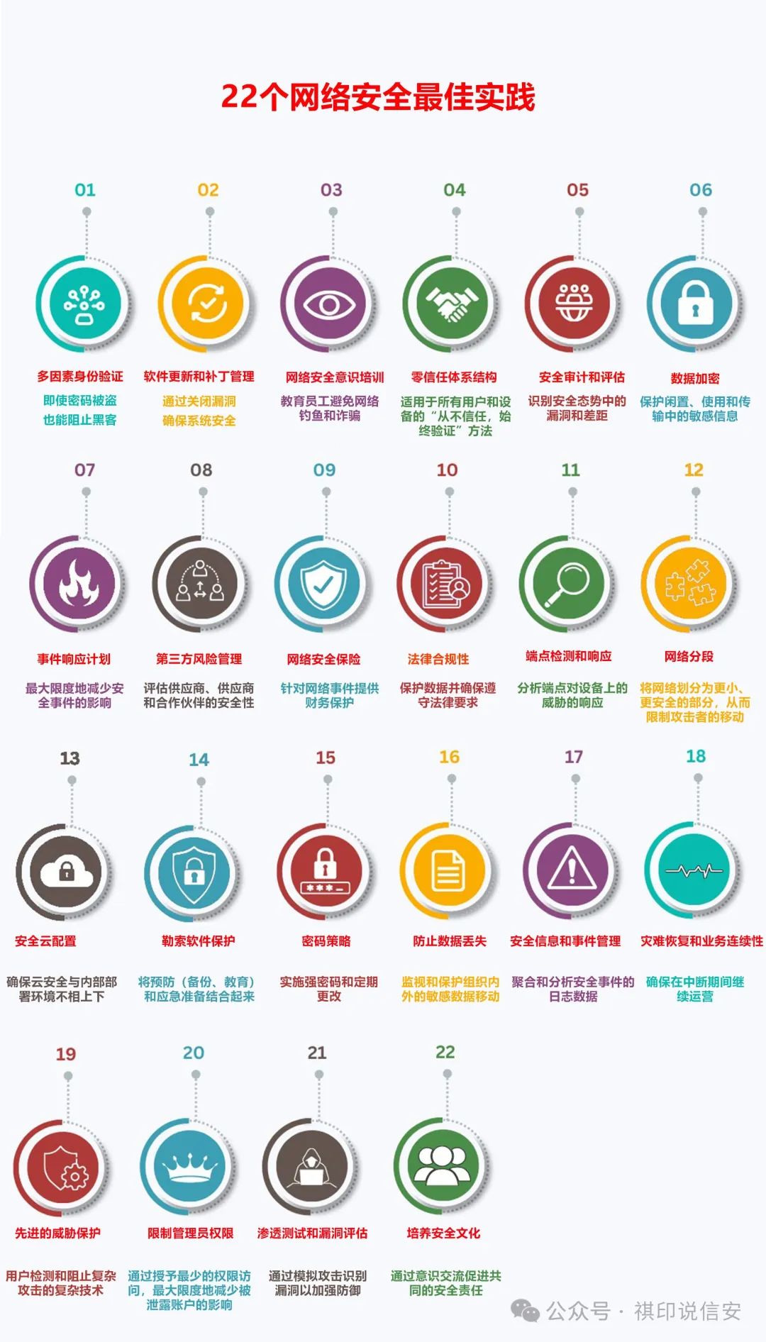以下是需要牢記的22個網(wǎng)絡安全最佳實踐要點: 1. 多重身份驗證2. 軟件更新和補丁管理3.網(wǎng)絡安全意識培訓4. 零信任架構