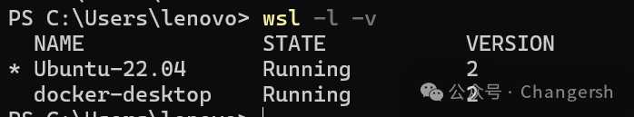 安裝完成后,查看wsl版本