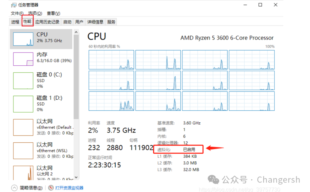 - 打開(kāi)“任務(wù)管理器”——“性能”,查看
