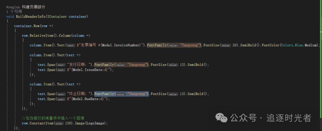 快速實(shí)現(xiàn)發(fā)票PDF文檔生成 創(chuàng)建InvoiceModel namespace QuestPDFExercise { public class InvoiceModel { /// <summary> /// 發(fā)票號碼 /// </summary> public int InvoiceNumber { get; set ; } /// <summary> /// 發(fā)票開具日期 /// </summary> public DateTime IssueDate { get; set ; } /// <summary> /// 發(fā)票到期日期 /// </summary> public DateTime DueDate { get; set ; } /// <summary> /// 賣方公司名稱 /// </summary> public string SellerCompanyName { get; set ; } /// <summary> /// 買方公司名稱 /// </summary> public string CustomerCompanyName { get; set ; } /// <summary> /// 訂單消費(fèi)列表 /// </summary> public List<OrderItem> OrderItems { get; set ; } /// <summary> /// 備注 /// </summary> public string Comments { get; set ; } } public class OrderItem { /// <summary> /// 消費(fèi)類型 /// </summary> public string Name { get; set ; } /// <summary> /// 消費(fèi)金額 /// </summary> public decimal Price { get; set ; } /// <summary> /// 消費(fèi)數(shù)量 /// </summary> public int Quantity { get; set ; } } }