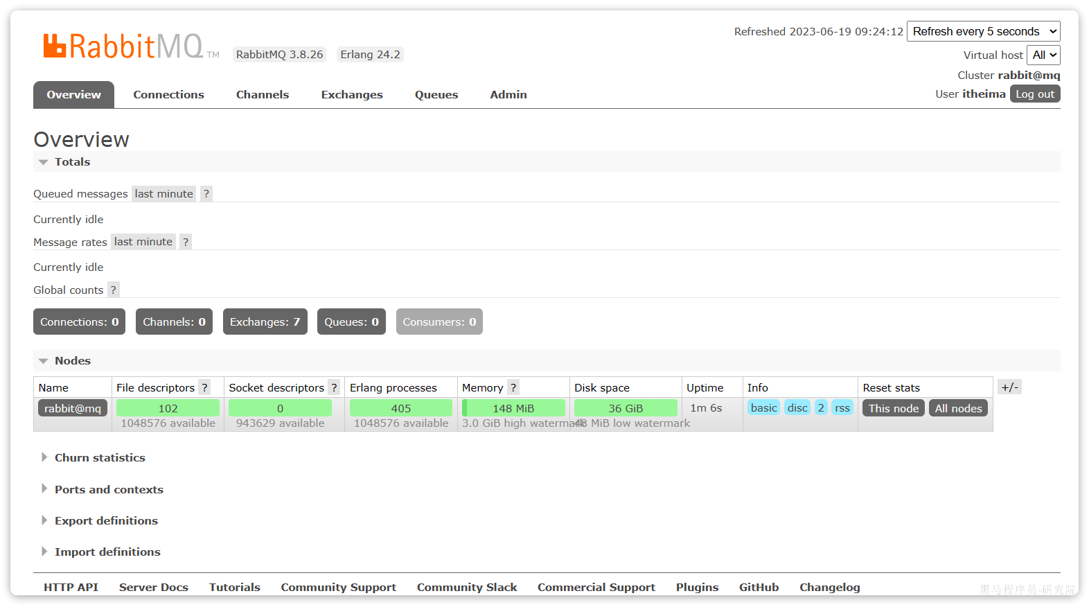 這里的用戶都是RabbitMQ的管理或運(yùn)維人員。目前只有安裝RabbitMQ時添加的itheima