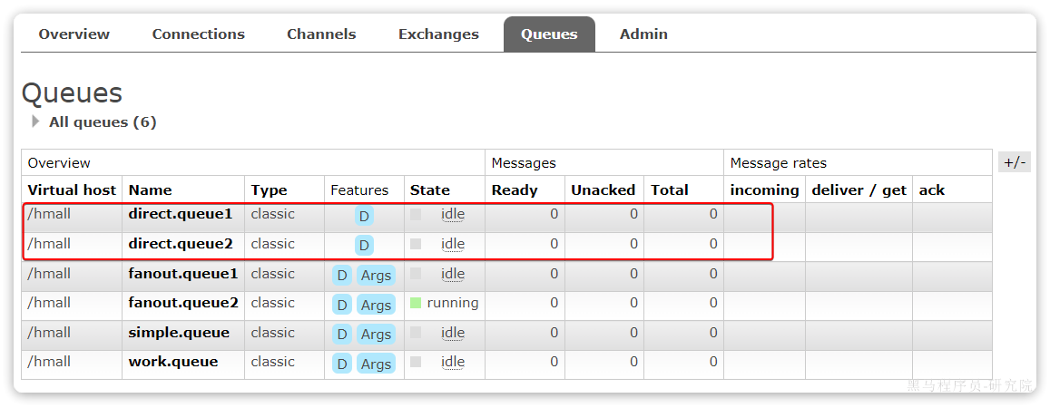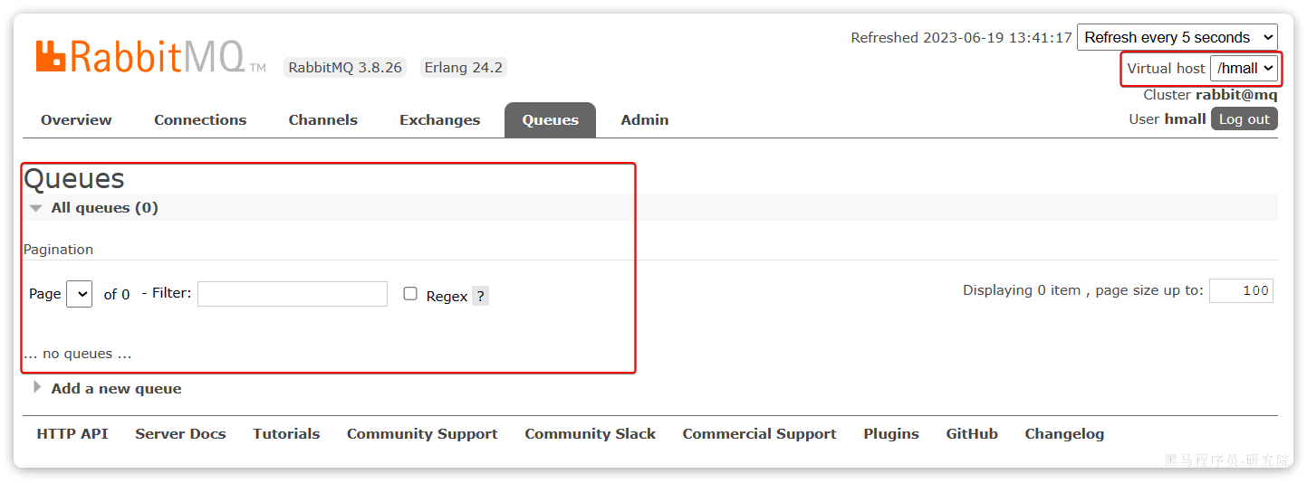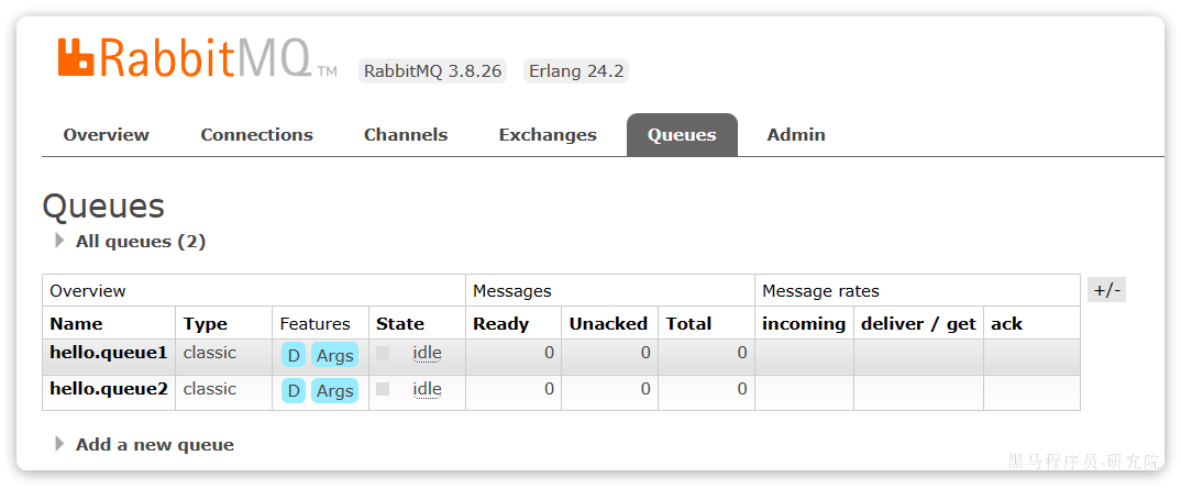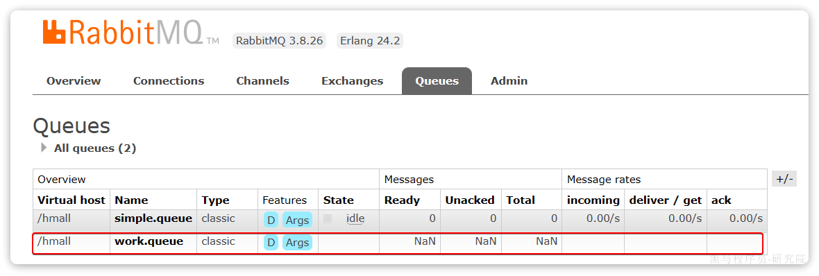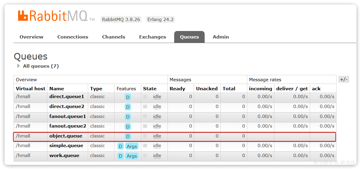 然后再次查看queues選項(xiàng)卡,會發(fā)現(xiàn)之前的隊(duì)列已經(jīng)看不到了: