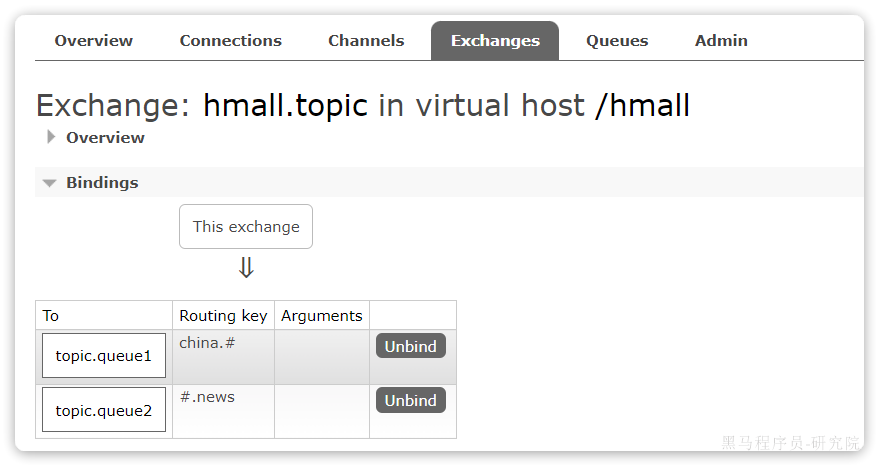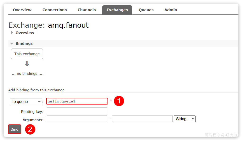 相同的方式,將hello.queue2也綁定到改交換機(jī)。