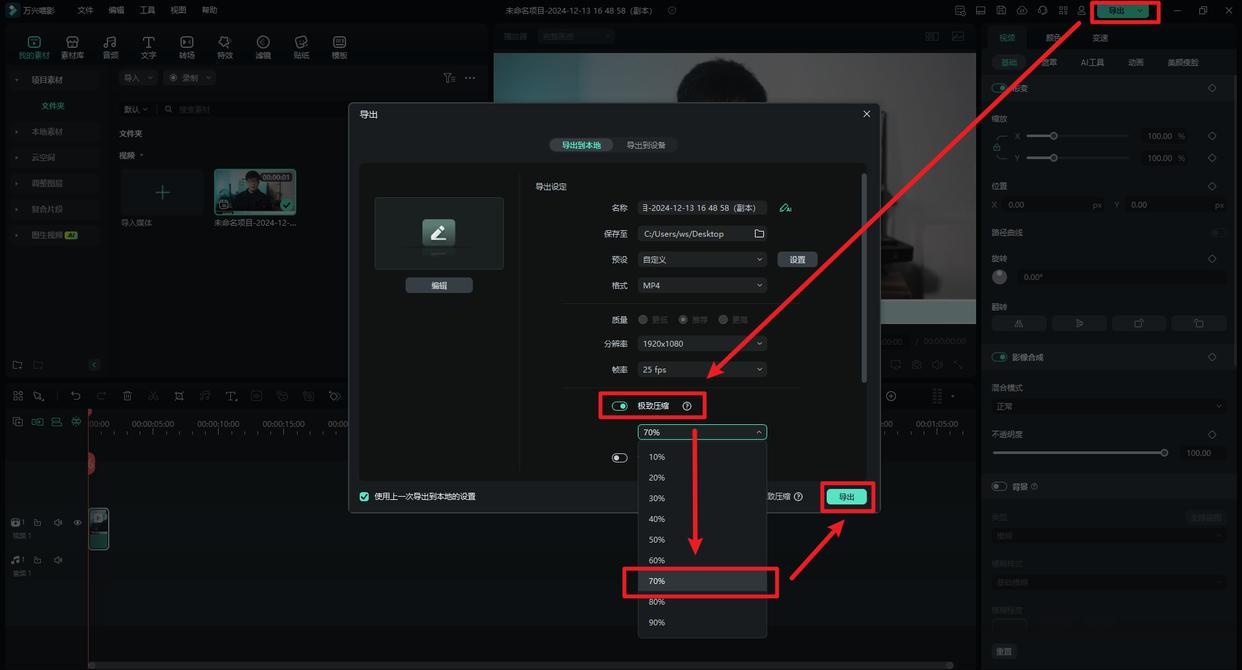 ![]() ![]() 視頻壓縮怎么操作不損失畫質(zhì)?推薦4個畫質(zhì)損失少的視頻壓縮工具已認證機構號 你有沒有發(fā)現(xiàn),現(xiàn)在視頻文件變得越來越大,一個短視頻動不動就接近1G,這給存儲和分享帶來了不小的困擾。怎么才能壓縮視頻又不損傷畫質(zhì)呢?其實,挑選一些好的視頻壓縮工具就可以了。今天就給你推薦 5 個實用的視頻壓縮工具,對畫質(zhì)的影響都比較小。 1. 視頻壓縮工具:萬興喵影萬興喵影是一款功能強大的視頻編輯軟件,同時也具備出色的視頻壓縮功能。它支持多種視頻格式,并且提供了簡單易用的操作界面,即使是沒有太多視頻編輯經(jīng)驗的用戶也能輕松上手。 在視頻壓縮方面,萬興喵影可以根據(jù)用戶的需要,靈活地調(diào)整視頻的分辨率、幀率、比特率等參數(shù),實現(xiàn)無損壓縮視頻的效果。 操作如下: ①剪完視頻后,點擊【導出】: ![]() ②點擊【極致壓縮】,選擇壓縮的比例。萬興喵影可以做到大幅度壓縮視頻大小,但是又幾乎不損失畫質(zhì)。 ![]() 與其他工具相比,萬興喵影的優(yōu)勢在于它不僅能夠接近不損失畫質(zhì)地壓縮視頻,還能在壓縮的同時對視頻進行剪輯、添加特效等操作,滿足用戶一站式視頻處理的需求。 例如,你可以在壓縮視頻的過程中,剪掉不需要的部分,添加字幕或者背景音樂,讓視頻更加完美。而且,萬興喵影的壓縮速度相對較快,能夠節(jié)省用戶的時間。 2. 視頻壓縮工具:HandBrakeHandBrake 是一款開源且免費的視頻壓縮工具,它支持多種視頻格式,包括 MP4、MKV 等常見格式。 ![]() 它的界面相對簡潔,操作也比較容易上手。用戶可以根據(jù)自己的需求選擇不同的預設參數(shù),進行視頻的壓縮和轉(zhuǎn)碼。不過,對于一些新手用戶來說,HandBrake 的高級設置可能會顯得有些復雜,需要花費一些時間去了解和調(diào)整。 3. 視頻壓縮工具:CloudConvertCloudConvert 也是一款在線視頻壓縮工具,它支持超過 200 種文件格式的轉(zhuǎn)換和壓縮,功能非常強大。 ![]() 除了視頻壓縮,還可以進行音頻、文檔等多種文件格式的轉(zhuǎn)換。它的操作界面簡潔明了,用戶可以輕松上傳視頻并進行壓縮設置。 然而,CloudConvert 的免費版本在使用上有一些限制,比如每天的轉(zhuǎn)換次數(shù)和文件大小限制。對于一些有大量視頻壓縮需求的用戶來說,可能需要升級到付費版本才能滿足需求。 4. 視頻壓縮工具:VideoSmallerVideoSmaller 是一個專門用于視頻壓縮的在線工具,它的特點是操作簡單,用戶只需上傳視頻,選擇壓縮后的視頻質(zhì)量,即可自動進行壓縮。 ![]() 它會根據(jù)用戶的選擇,智能地調(diào)整視頻的分辨率、比特率等參數(shù),以達到壓縮的目的。不過,VideoSmaller 對于視頻的時長和大小有一定的限制,對于一些較長或者較大的視頻文件,可能需要分段進行壓縮。 而且,由于是在線工具,對于隱私比較敏感的視頻內(nèi)容,上傳到網(wǎng)站上可能會存在一定的安全隱患。 總之,以上這 4個視頻壓縮工具各有優(yōu)缺點,用戶可以根據(jù)自己的實際情況和需求選擇合適的工具進行視頻壓縮。無論是開源的 HandBrake,還是在線便捷的CloudConvert、VideoSmaller,亦或是功能強大的萬興喵影,都能幫助我們輕松解決視頻文件過大的問題,讓視頻的存儲和分享變得更加簡單高效。 該文章在 2025/8/12 10:17:20 編輯過 |
