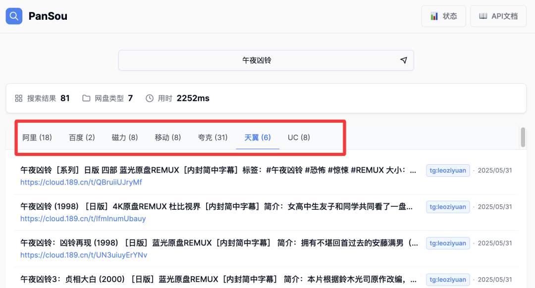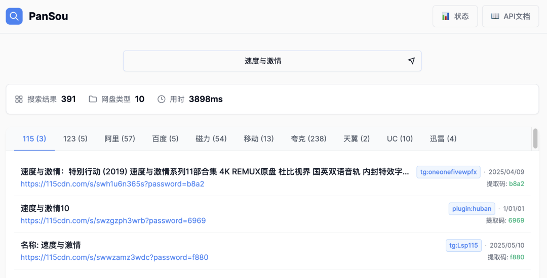 網(wǎng)盤資源搜索 API 服務(wù) PanSou:逆天網(wǎng)盤搜索工具!用著太絲滑了...