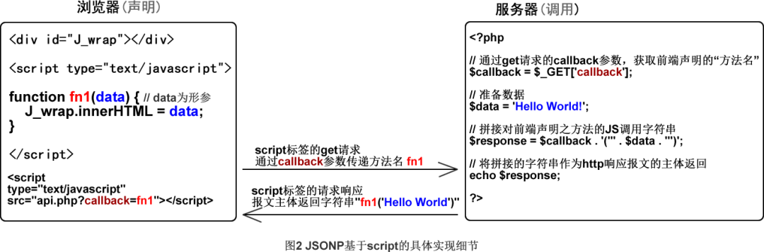 簡單說就是,將某JS方法的聲明和調(diào)用分別交給前端和后端,通過實(shí)參與形參間的傳值實(shí)現(xiàn)前后端通信。 這個(gè)方案乍看之下似乎有兩個(gè)問題,一個(gè)是這個(gè)“JS方法”是如何實(shí)現(xiàn)前后端同步的? 再就是后端服務(wù)器上的動(dòng)態(tài)腳本執(zhí)行環(huán)境怎么能調(diào)用前端瀏覽器上聲明的JS方法呢? 這里先回答第二個(gè)問題。那就是在這個(gè)情景下,說JS方法由后端調(diào)用,并不等于說執(zhí)行也是后端在做。 事實(shí)是,雖然調(diào)用是后端,但執(zhí)行其實(shí)還是在前端瀏覽器中。 而實(shí)現(xiàn)這種調(diào)用與執(zhí)行的分離,以及實(shí)現(xiàn)“JS方法”的同步,都是靠的一個(gè)相同的手段,那就是HTML的 script 標(biāo)簽。 這個(gè)script標(biāo)簽原本是用來通過http請求加載靜態(tài)的JavaScript腳本資源的。可是某個(gè)老六突發(fā)奇想,用script加載起動(dòng)態(tài)的JavaScript腳本,然后就誕生了JSONP的通信方式。 這里說的所謂“靜態(tài)的JavaScript腳本資源”,說的是放在服務(wù)器磁盤上一成不變的JavaScript文本資源,誰請求都是得到一個(gè)相同的副本,就像提前做好的預(yù)制菜一樣。 而所謂“動(dòng)態(tài)的JavaScript腳本資源”,就是說JavaScript文本資源并不是現(xiàn)成的,請求實(shí)際是發(fā)向一個(gè)后端運(yùn)行的“動(dòng)態(tài)腳本”,比如PHP、JSP之類的。然后JavaScript腳本則是由這些后端腳本再根據(jù)具體情況按需生成,整體而言就像“點(diǎn)菜現(xiàn)炒”。 具體說就是,這個(gè)“后端腳本”會(huì)根據(jù)http請求的具體參數(shù)的不同響應(yīng)返回不同的JavaScript腳本文本給瀏覽器端來執(zhí)行。 于是,那個(gè)計(jì)劃由“前端聲明后端調(diào)用”的JS方法的方法名便由前端創(chuàng)建,并由script標(biāo)簽發(fā)起的http請求的get參數(shù)同步給了后端。 接著,后端腳本則根據(jù)得到的JS方法名拼接一個(gè)對該方法進(jìn)行調(diào)用的JavaScript腳本片段,并將要傳輸給前端的數(shù)據(jù)作為此次調(diào)用的實(shí)參。 最后,這個(gè)由后端拼接的、帶著實(shí)參的“JS方法調(diào)用片段”便通過前端script標(biāo)簽發(fā)起的http請求的響應(yīng)報(bào)文從服務(wù)器返回給瀏覽器,并在瀏覽器端自動(dòng)執(zhí)行。 最終,在執(zhí)行的過程中,后端的數(shù)據(jù)便通過JS方法調(diào)用時(shí)的實(shí)參傳遞給了JS方法聲明時(shí)的形參,進(jìn)而進(jìn)入回調(diào)函數(shù),然后執(zhí)行具體的前端渲染邏輯。 JSONP的流行主要是為了繞過瀏覽器的“同源策略”,實(shí)現(xiàn)跨域請求。相比于CORS這種更標(biāo)準(zhǔn)和簡潔的方案,它的優(yōu)點(diǎn)就是兼容性好,不管多老的版本,只要支持JS的瀏覽器都支持JSONP。 -END-閱讀原文:原文鏈接 該文章在 2025/8/19 9:01:32 編輯過 |
