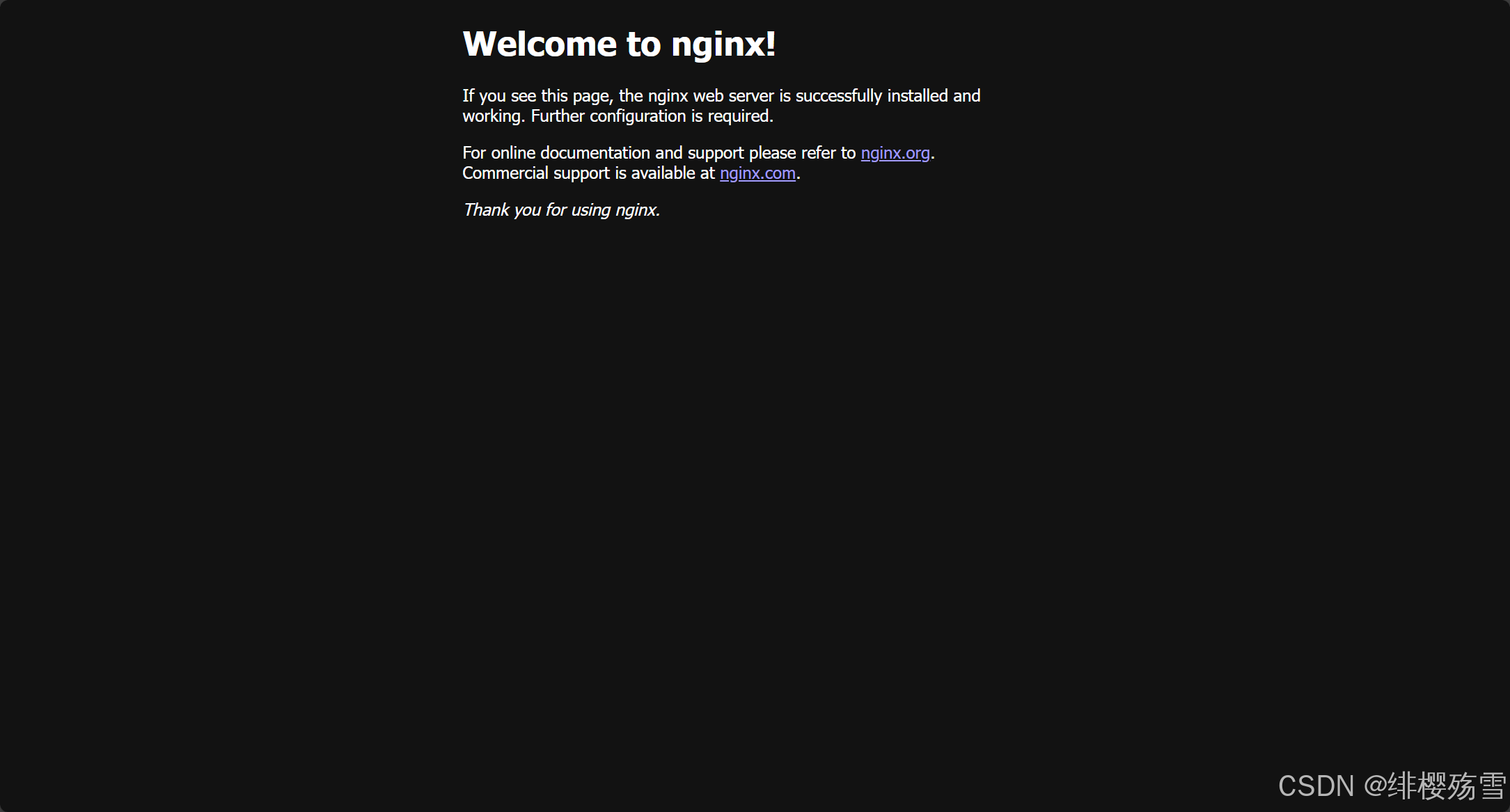 (具體端口看個(gè)人配置,默認(rèn)配置文件端口:80)出現(xiàn)以下界面說明配置成功如果需要修改配置文件,則需要重新啟動(dòng) Nginx,首先