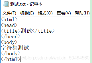 此時(shí)的文檔編碼為:ANSI,可以使用記事本重新打開該html文件--》文件--》另存為: